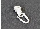 Bílá plastová záclonová žabka. Velikost celé žabky: 4 cm. Vniřní velikost háčku: 1 cm. Materiál: plast.