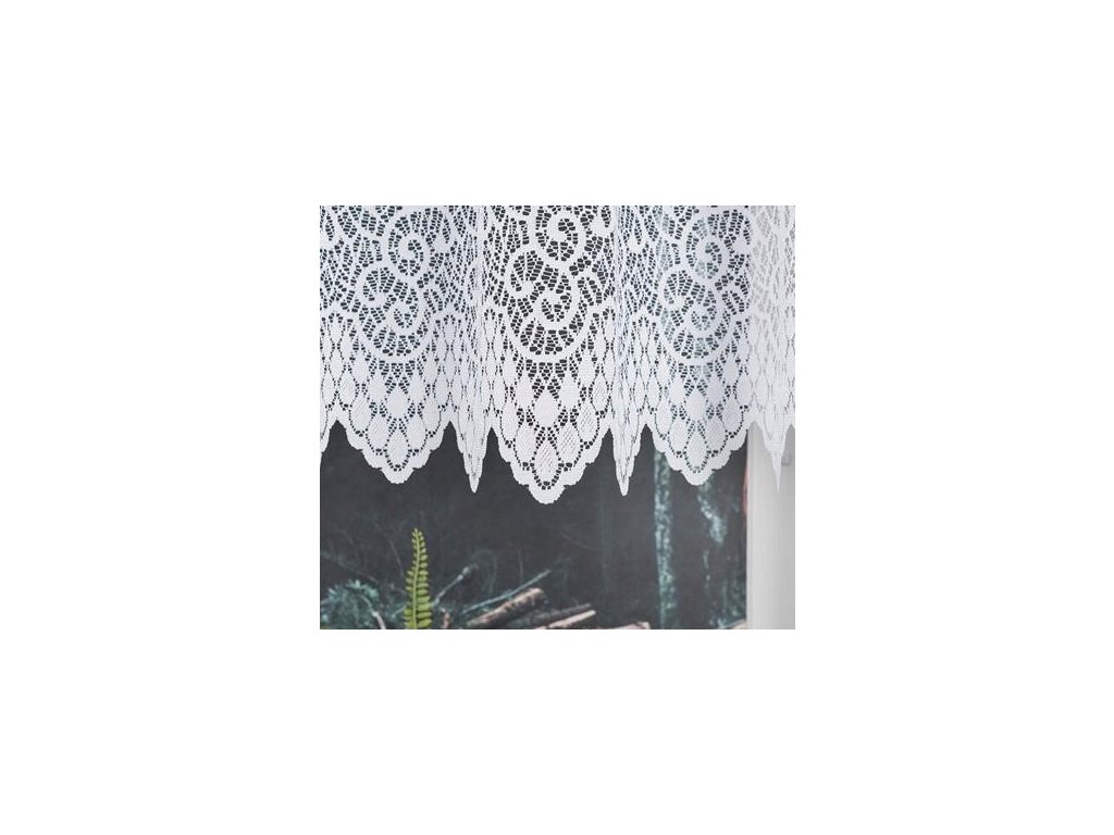 Bílá vitrážová záclonka, která se vyrábí ve výšce 50 a 70 cm.