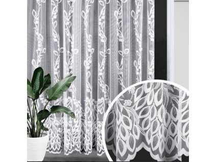Moderní kvalitní žakárová záclona v bílém provedení se vyrábí ve výškách 120, 140, 180, 200, 230, 250, 270 a 300 cm.