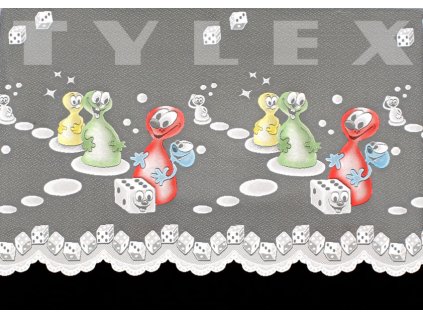 Celoplošný vzor této záclony zaujme svou jemnou kresbou čar a kvítků. Průměr kvítku je 15x15 cm. Kvítky jsou zvýrazněny stínováním a jemným barevným vzorem. Čáry jsou ozdobeny spirálkou, nebo malými lístky. Doslova, jakoby záclonu někdo namaloval rukou. Jemnost záclony neruší ani spodní kanta do výšky 3 cm tvořená mezi dvěma obloučkovými linkami jemnou vlnovkou. Délka obloučku je 15 cm. Vykrajovaná část je 2 cm ve středu.